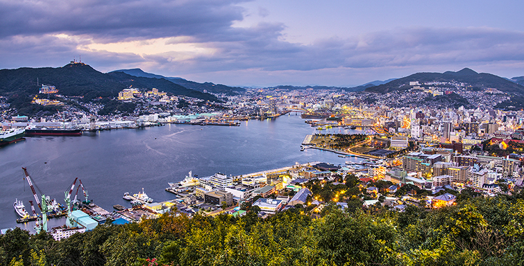 Nagasaki, cidade mais pequena, com meio milhão de habitantes, pode não possuira mesma riqueza arquitetónica e espiritual de Quioto, mas tem mar. Não apenas mar, costa, mas uma localização única, de frente para o Pacífico, rodeada de montanhas por quase todos os lados. Uma geografia que em tempos lhe permitiu ser um porto fundamental na rota comercial entre o Ocidente e a Ásia, mas que agora gosta de ostentar outro título: a de cidade com a vista noturna mais bonita do planeta.